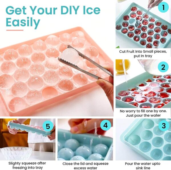 Our round ice cube mold simplifies the freezing process. It comprises a bowl and a lid with small holes for easy pouring and freezing. Just fill the bottom with water, cover the top, and freeze for at least 4 hours. With this set of 3 trays, you can create up to 99 round ice balls at once, ensuring an ample supply for your beverages.
